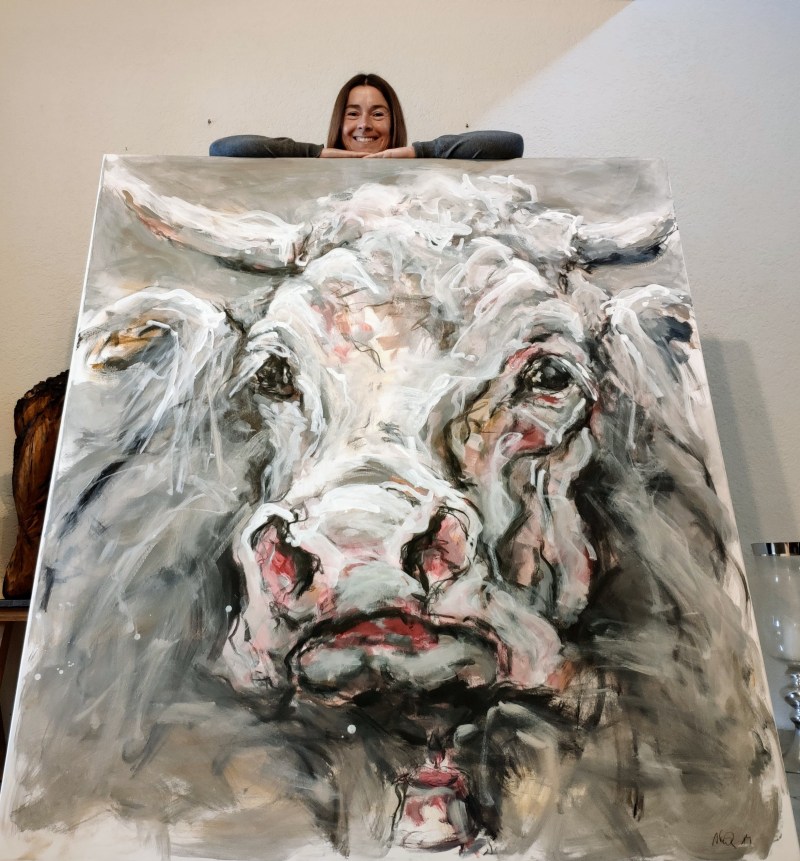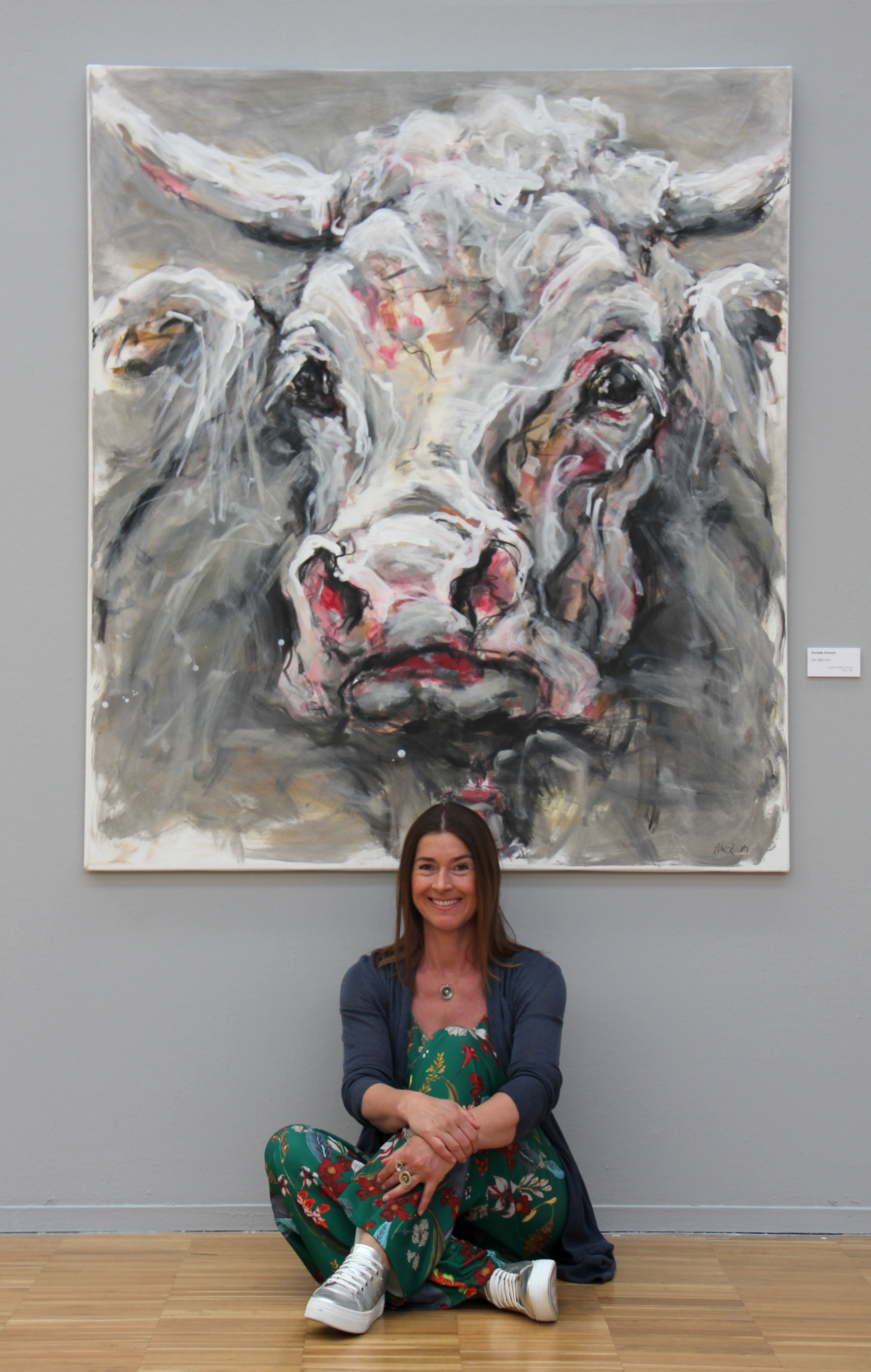 Nach dem Umzug von Madrid ins Allgäu haben mich die Kühe und Schafe beschäftigt, die überall auf den Weiden anzutreffen waren. Mein Vater sagte bereits zu Beginn unseres Aufenthalts, dass im Allgäu die Kühe schöner seien als die Mädchen, daher suchte ich nicht lange nach einem neuen Aktmodell. Ich ging ziemlich lange gedankenschwanger, was ich genau machen möchte, die Grundidee war jedoch eine große Kuh für mein Wohnzimmer, ohne jetzt Kitsch zu produzieren. Nachdem ich beim Kunstmarkt in Schorndorf die ersten Skizzen zeigte und sie großen Anklang fanden, beschloss ich für das folgende Jahr mit dem Schorndorfer Künstler Hardy Langer zusammen bei der Kunstnacht das Thema Landliebe aufzunehmen, eine Gratwanderung mit röhrenden Hirschen, idyllischen Heuhütten, schönen Rindviechern und Alpenidylle.