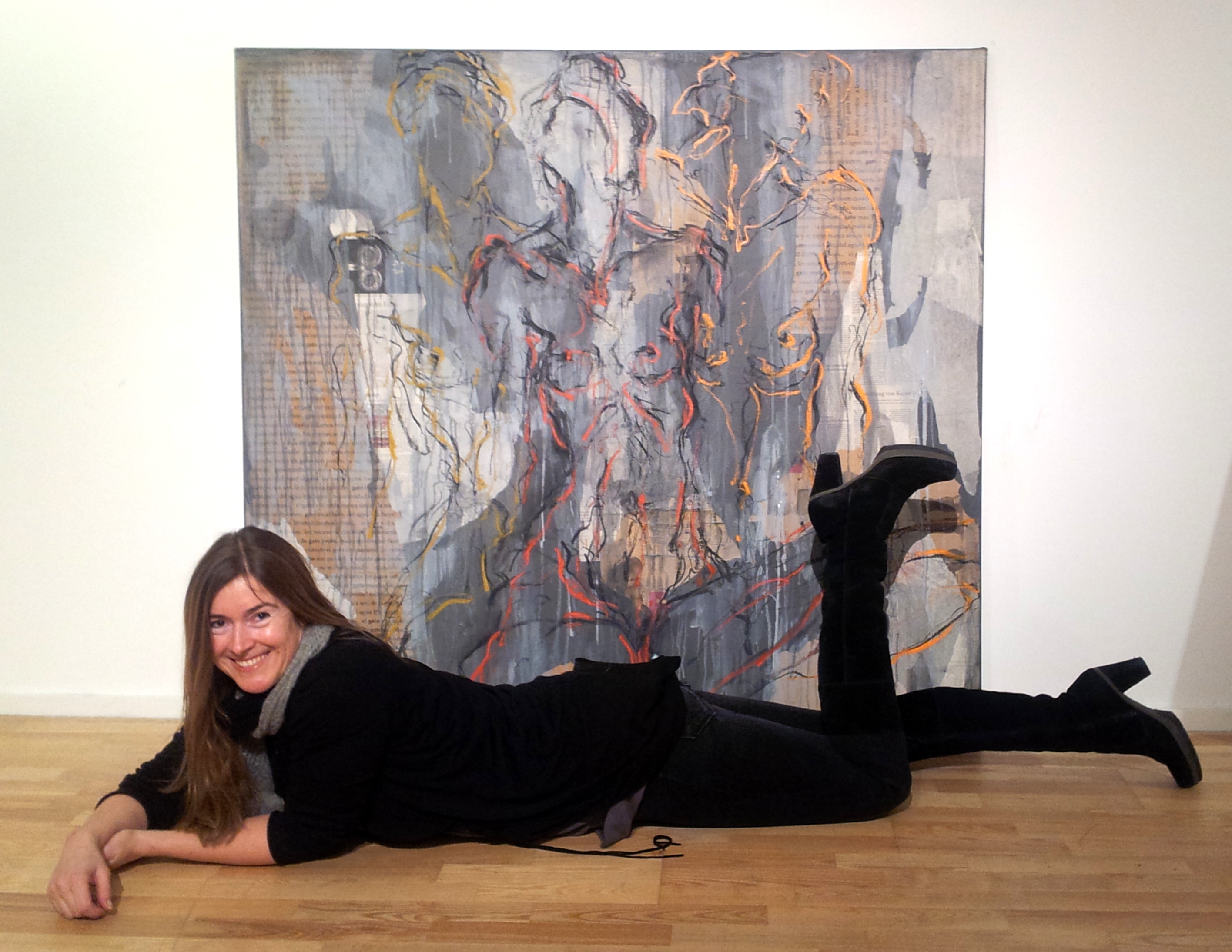 Soy dibujante de todo corazón. Me encanta trabajar con modelo, captar en poco tiempo y breves trazos volátiles e impacientes la pose. En el momento de terminar el dibujo, el modelo cambia ya a la siguiente pose, cinco minutos, terminado; otra pose, dos minutos; una pose de movimiento difícil de posar, solo un minuto, el modelo no aguanta más; la siguiente pose tumbada para descansar, 15 minutos… en una hora entre 10 y 25 apuntes, un pequeño recreo y después otra sesión. Qué concentración, qué estrés, qué creatividad. Cómo se suelta y se mejora el trazo. Acabo agotada y contemplo los resultados. Hay varios apuntes que han salido fenomenal, me sirven luego para realizar los formatos grandes. Son la base de mi pintura.